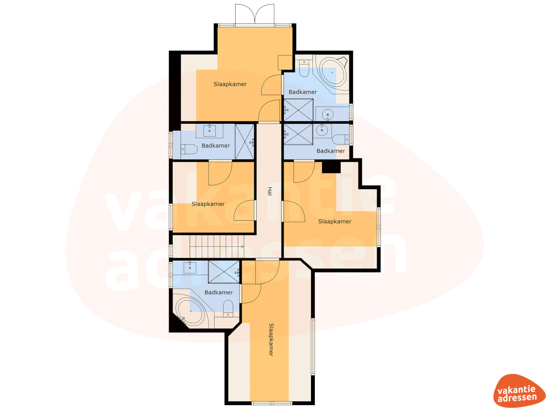 - Alle slaapkamers zijn voorzien van eigen douche, toilet en wastafel
