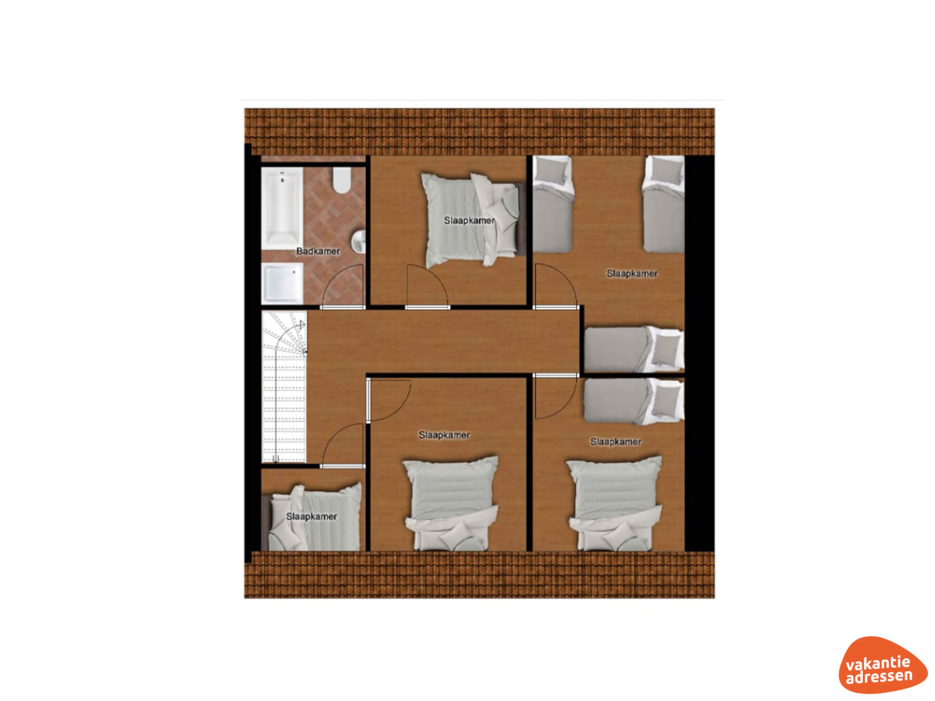 De accommodatie beschikt over 6 sfeervolle slaapkamers, verdeeld over de begane grond en de eerste verdieping. Op de begane grond bevindt zich 1 zeer ruime slaapkamer met twee 1-persoonsbedden. Verder is er een -voor mindervaliden- aangepaste badkamer voorzien van douche met douchestoel, toilet met beugel en een wastafel. Op de eerste verdieping bevinden zich 5 slaapkamers, er zijn 3 kamers voor 2 personen en 2 kamers voor 3 personen. Alle slaapkamers zijn sfeervol ingericht en voorzien van boxspringbedden met comfortabele matrassen (90x200), zodat je uitgerust weer aan de nieuwe dag kunt beginnen! Daarnaast is er op deze verdieping een moderne badkamer met ligbad, douche, toilet en wastafel, voorzien van vloerverwarming. Voor de kleintjes zijn er gratis voorzieningen beschikbaar, zoals een kinderbedje, kinderstoel, traphekje en stopcontactbeveiliging.