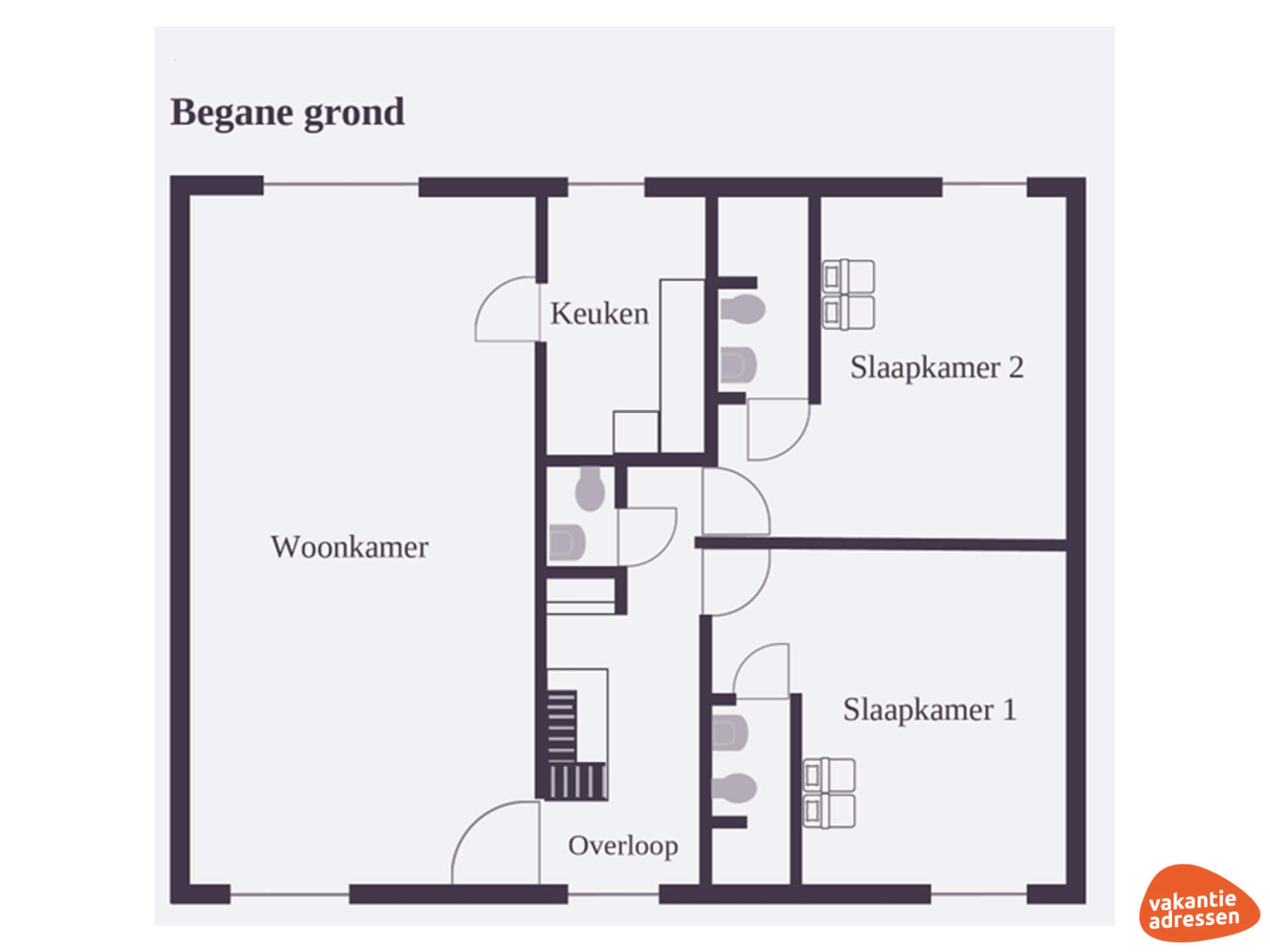 Slaapkamer 1: 2x 1-persoonsbed (aangepast sanitair)