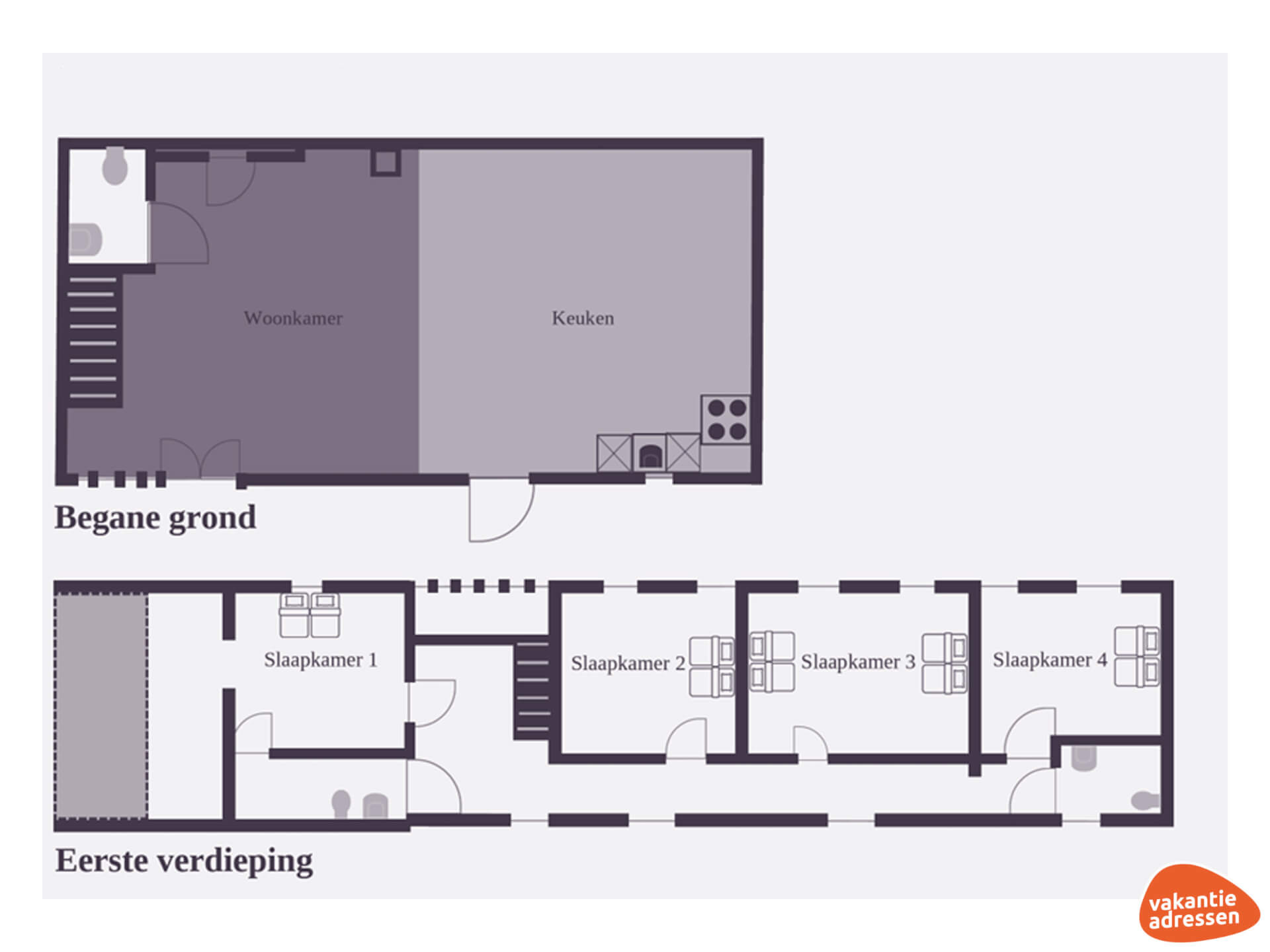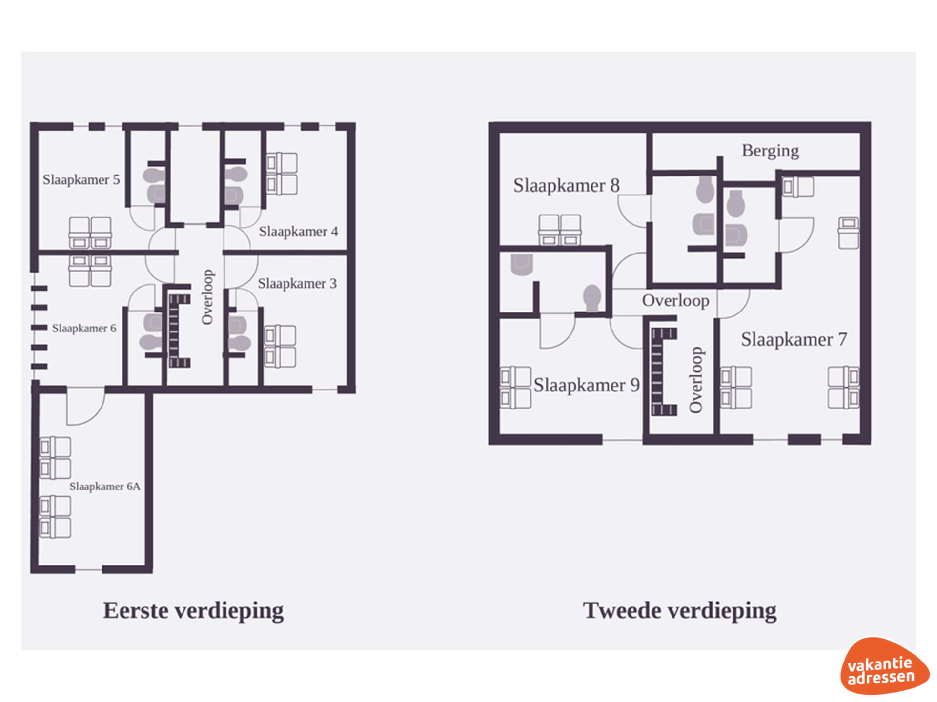 Slaapkamer 7 & 8: 2x 1-persoonsbed + 4x 1-persoons bed ensuite