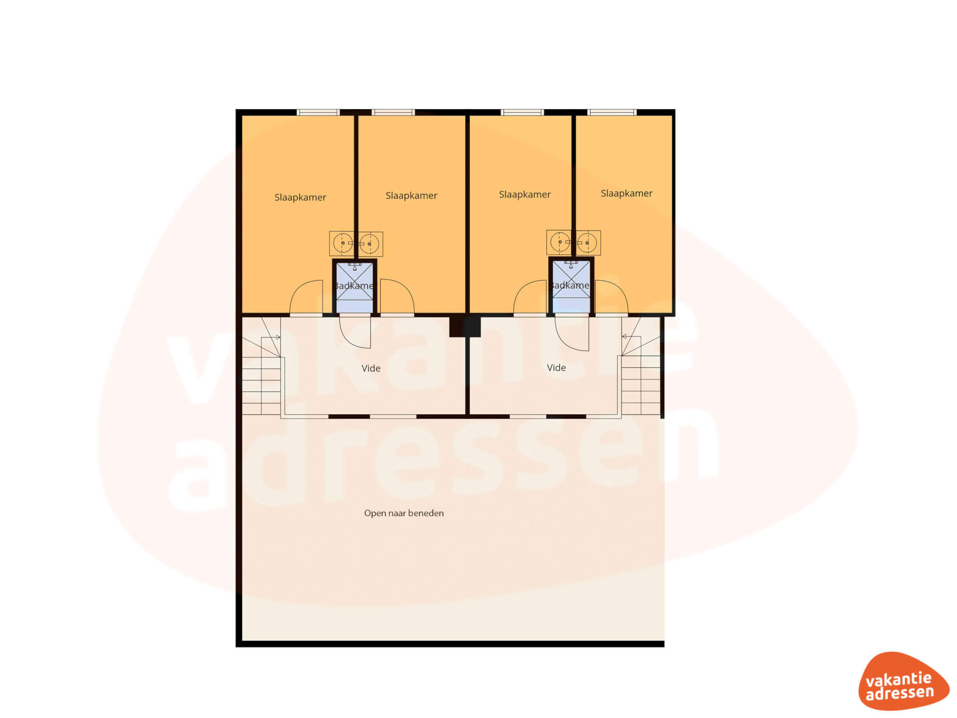 De 8 slaapkamers zijn comfortabel en praktisch ingericht, elk voorzien van een wastafel. De badkamers omvatten 4 douches en 2 toiletten, met 1 aangepaste douche en toilet voor gasten die extra gemak nodig hebben. Dankzij de slimme indeling kan je genieten van rust en privacy na een actieve dag buiten. Er zijn standaard dekens aanwezig. Je kan een bedlinnenpakket bijboeken bestaande uit 2 lakens, 1 kussensloop en 1 handdoek.