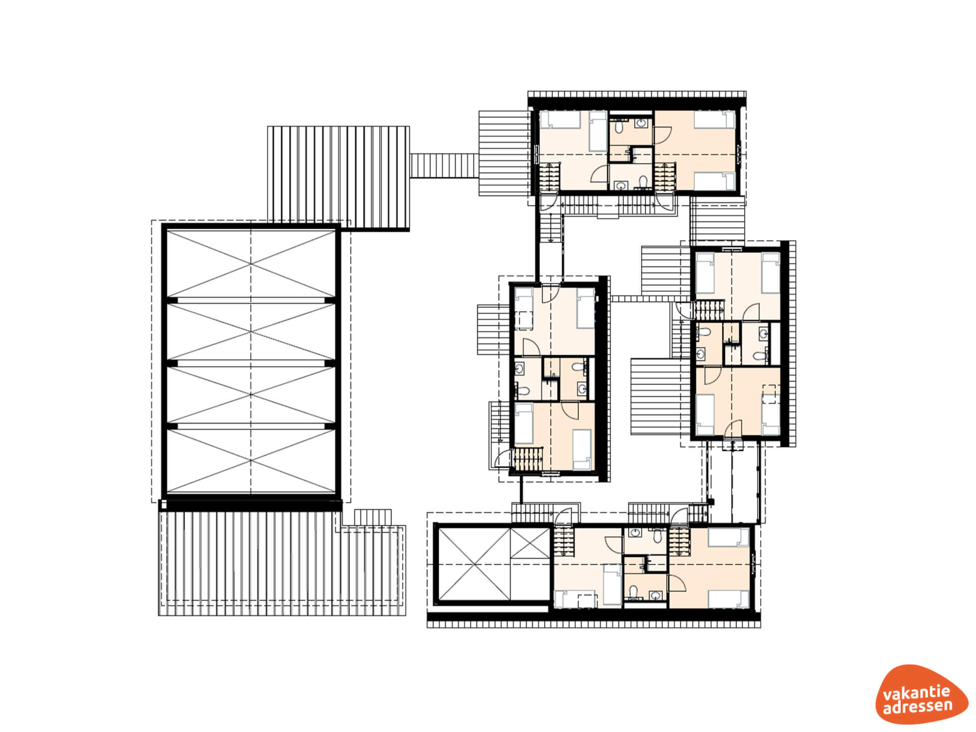 Slaapkamer 8: 2x 1-persoonsbed + douche, toilet en wastafel