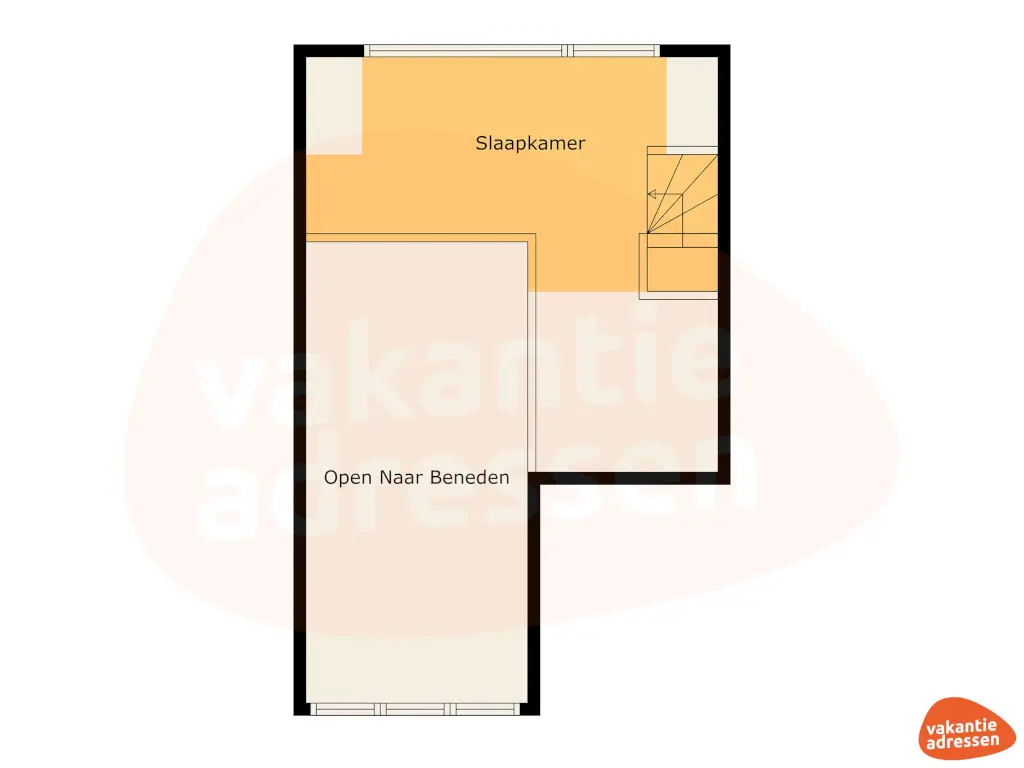 Slaapkamer 4: 2x 1-persoonsbed (op de mezzanine, te bereiken via een vaste trap in de woonkamer)